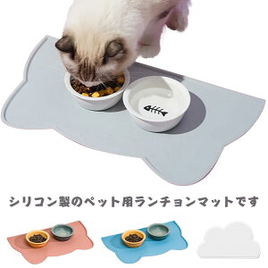 商品 ペット用ランチョンマット 2枚セット 猫 犬 お食事マット 餌用マット エサ用マット ボウル置きマット シリコン製 防水 滑り止め 洗える 撥水 撥油 かわいい猫耳 ペット お手入れ簡単 お食事グッツ...