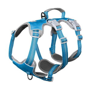 締め付けないデザインで、着脱が簡単: 首の2点と胴体の2点でサイズ調節が可能。ハーネスは左右2つのバックルで胴回りのベルトに固定するため、足を上げずに簡単に着脱できます。ハーネスは背中と胸で支えるので、犬...