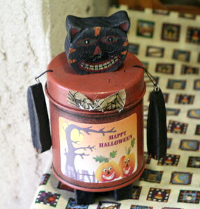 木製の手足と黒猫の頭がついています。 アンティーク調の仕上げになっていて、 飾っておくだけでもかわいいかも。 サイズは 本体の高さ約19センチ、直径約9センチ。 キャンディ