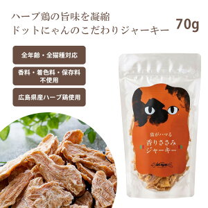 ドットにゃんが作りたかったササミジャーキーです 健康的に育てた広島県産ハーブ鶏のササミを1本1本「薄造り」のようにスライスしてからじっくり乾燥。香りが凝縮された歯ざわりの良いジャーキーに仕上げました。 食材について 使用し
