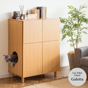 生活感の出る猫トイレをすっきり隠せるキャットトイレタリーキャビネット
