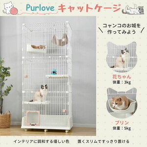 猫 ケージ トイレ付 ハンモック付 収納型 キャットケージ 3段 1段2段可能 キャスター付 キャットハウス