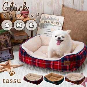 【英国チェック3色から選べる】あったかフカフカ!スクエアベッド グリュック ペットベッド tassu タッス 2025年新作 メーカー取り寄せ品 送料別 秋 冬 保温 防寒 寒さ対策 犬 猫