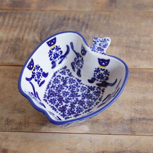 ポーランド製のボウルです。 浅めのリンゴ型のボウルで、副菜やデザート、フルーツ、サラダなどに ちょうどよいサイズです。 黄色のリボンをつけたネコがモチーフになったかわいいデザインです。 同じ形のボウルであれば、重ねられます