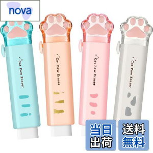 m×25mm、セット内容:4個入り(各色1個)br【かわいい猫の肉球形デザイン】猫の肉球デザインの可愛らしいケースに入ったスティック消しゴムで、