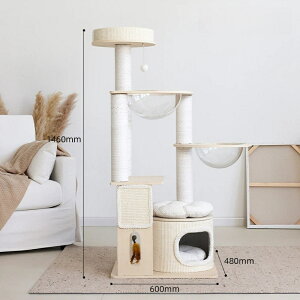 【透明ハンモック】最上階には透明な宇宙船ハンモックが設置されています、猫ちゃんの可愛い肉球が見えます!【設置自由 省スペース】スペースを取らないので、ワンルームの方でも安心できます!【多頭飼い】休憩できる場所はたくさん