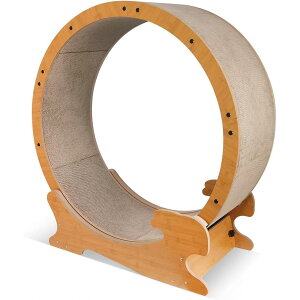 室内で暮らす猫ちゃんのための爪とぎ一体型ランニングマシン ●猫ちゃん用のランニングマシン。室内で生活する猫ちゃんの運動不足解消とストレス発散におすすめ。車輪の本体は段ボール製の爪とぎなので、車輪の中と外で爪とぎができま