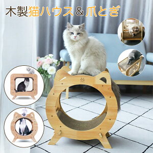キャットハウス 猫爪とぎ 木目調 隠れ家 猫ハウス ダンボールハウス 木製 猫 爪とぎ