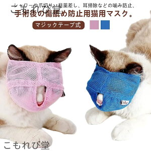 耳掃除などの噛み防止、手術後の傷舐め防止用猫用マスク。【マジックテープ式】メッシュ生地で、通気性も確保して蒸れを防ぐ仕様です。着脱はマジックテープでカンタン、スムーズ。猫ちゃんのお風呂、爪