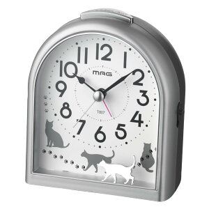 ◆商品名:MAG(マグ) 目覚まし時計 置き時計 アナログ ねこ ネコ 動物 かわいい 子供 静音 連続秒針 電子音 アラーム スヌーズ ライト シルバー ミグレイト T-747 SM-Z ノア精密本...
