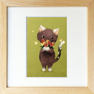 イギリスの作家ベッキー ソーンズのアートフレーム 【プレイフル キャット1】です。 柔らかな色合いと、動物たちの優しい表情が印象的なベッキー ソーンズの作品。 ガラス...