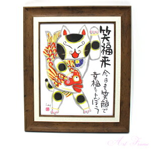 奈良の自然に囲まれた町屋を拠点とし、古き町屋の情緒とそこに住むのら猫や四季をテーマに描く墨彩画家である糸井忠晴(日本男性作家)の絵画【招き猫】です。 鮮やかな色使いとメッセージは優しい雰囲気で癒されファンから元気になる絵