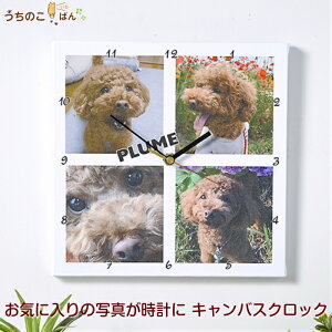 商品詳細 サイズ商品サイズ/ 縦250mm 横250mm 厚さ20mm 材質本体:キャンバス生地 木材 時計:クオーツ(スイープ式)、針(時針、分針、秒針)、単三電池1本 印刷写真4枚または8枚 文字 ご注文時の注意事項 ★彫刻(印...