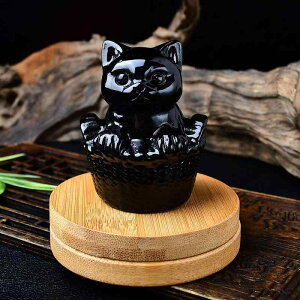 ・主な素材: 黒曜石・カテゴリ: 動物・デザイン: 花かご猫・スタイル: モダンミニマリスト