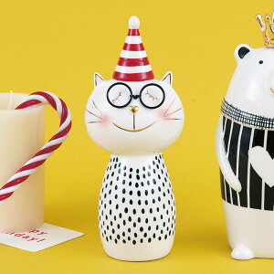 陶器のキャット 【完成品】さりげなく北欧風な、シンプルカラーの陶器置物。三角帽に眼鏡を掛けたユニークなネコです。 サイズ:幅7.6×高さ18×奥行6.4cm 素材・材質陶器 (商品カテゴリ)手芸 キット...