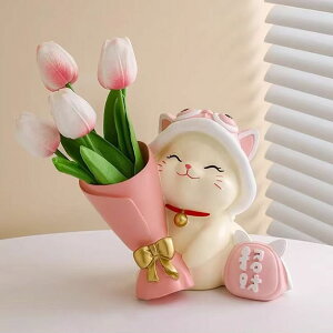 かわいい猫花瓶 花瓶 + 花束 可愛い 造花 バラ チューリップ インテリア 手作り ブーケ 花束 フェイクフラワー アーティフィシャルフラワー チューリップ 置物 結婚式 DIY パーティー