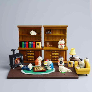 カテゴリ: 樹脂工芸品・デザインバリエーション: コーヒーおじいちゃん、猫が本を読む、猫が手紙を書く、猫おばあちゃん、考える猫、デスクライト、電話、チェス、蓄音機、木製キャビネット、衝立、横になって本