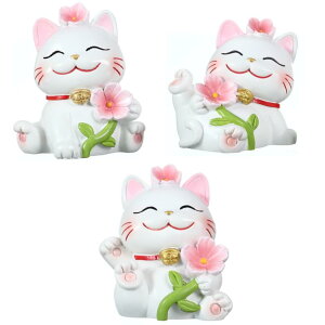 siawadeky 猫 フィギュア 置物 3個入り 可愛い 招き猫 桜 ミニチュア置物 リアル 子猫 ミニトイ 幸運招き 和風 マイクロ工芸品 雰囲気満点 インテリア 卓上 装飾品 お見舞い 記念日 誕生日...