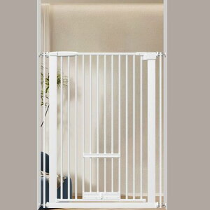 【ペットドア付き】ペットゲートには猫や小型ペットの出入りに便利な小さなドアが付いています。この小さなペットドアが開く高さは調節して固定することができます。ロック機能を含む、赤ちゃんとペットがいる家庭にやさしいゲートです...