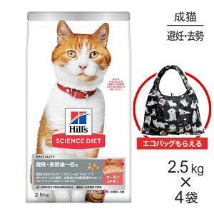 ヒルズ サイエンス・ダイエット 避妊・去勢後~6歳 避妊・去勢猫用 サーモン&チキン(2.5kg×4)+エコバッグのおまけ付商品です。【こちらの商品は、1セットご購入ごとに【エコバッグ1袋】をお付けいたします...
