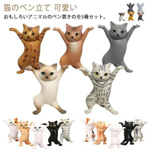動物 かわいい ペンスタンド 5個セット 癒しグッズ 猫のペン立て