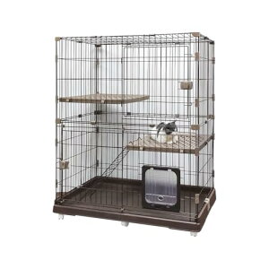 2 段式サイズ+キャスター付きで、移動・安定性両立:このネコケージは 2 段構造で、サイズは横幅 70.5cm× 奥行 54.5cm× 高さ 75cm と、ネコが活動するスペースを十分に確保しています...