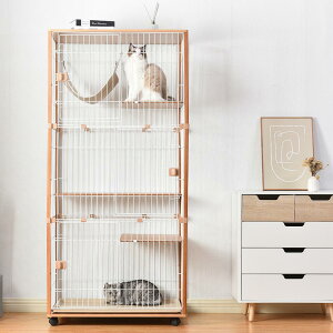 良質な板材で猫ケージを作るモンゴリマツを採用し、滑らかでバリがなく、材質が硬く耐摩耗性がある全景デザイン、死角のない360°視野風通しがよく、蒸し暑くない猫の動きをいつでも観察できるキャスターつき、自由に動く移動しやすく