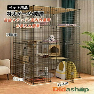 【4段式&広々空間】猫が自由に遊べる立体縦型設計。上質スチール製の4段構造でチンチラなどの大型猫も快適。段差移動と寛ぎスペースを両立、多頭飼い家庭に最適な「キャットケージ」です。トイレ付き一体型で排泄物の管理もラクラク。 【キャス...