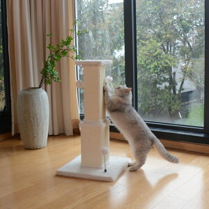 【商品説明】:ポールで爪とぎができるのでストレス解消にオススメ。見晴らしの良いてっぺんの台座はお気に入りスポットになること間違いなし。【スッキリとした据え置き】:高すぎず場所もとらないのでお部屋の空きスペースに気軽にお
