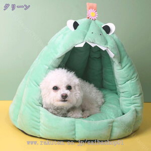 【保温・防寒】可愛くておしゃれなカエルの形、新緑と温かみのあるベージュを組み合わせて、ペットに暖かい休息場所を提供し、寒い冬でも暖かく快適な休息と睡眠をお楽しみいただけます。 【柔らかい・ふわふわ】表...