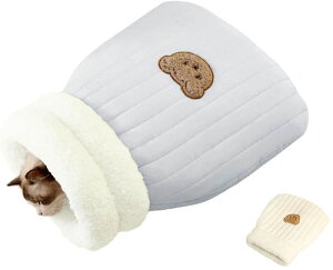 秋冬の防寒対策に欠かせない寝袋仕様の猫ハウス&ベッドです。筒型の半密封式のデザイン、保温効果がよくて猫の体を暖かく包み込、ご愛ペットに十分な安全感をやります。背のところに可愛い熊柄があり、おしゃれで可愛いです...