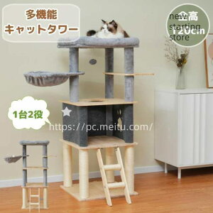【高さ141cm 省スペース設計 多頭飼い対応 爪とぎ付き キャットタワー|愛猫が喜ぶ快適空間!】 猫ちゃんのための快適空間を提供する高機能キャットタワーです。 省スペース設計ながら全高141cmの高さがあり...
