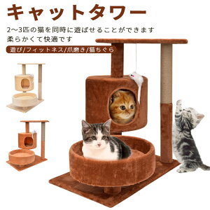 キャットタワー 省スペース つめとぎ 天然麻紐 耐久 組立簡単 支柱 ミニ 猫タワー 昼寝タワー 低い 遊び場 おもちゃ かわいい おしゃれ ストレス解消キャットランド据え置き型 猫用爪と