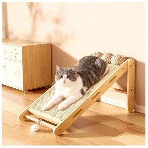 スクラッチ 【サイズ】高さ45cm、重量1.6KG、天然木製タイプです。 【猫が喜ぶ機能満載】爪とぎ・玩具付きなど、たくさんのポイントが詰め込まれています!麻素材の爪研ぎポールは単独購入可能です! 【天然木の音と温もり】全体は天然木を