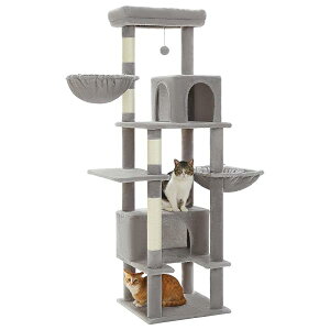 キャットタワー 多頭飼い 大型猫用 スリム 猫タワー 大型 爪研ぎ 麻紐 ハンモック 据え置き 省スペース 人気 おしゃれ かわいい シンプル おもちゃ 運動不足 安定 頑丈 大型猫 - グレー 17...
