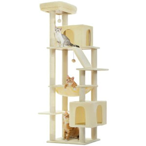 【商品仕様】サイズ:54×54×154cm、13.7kg【爪とぎポールたくさん】天然サイザル麻紐爪とぎポール、頑丈で長持ちです!【転倒防止ベルト】壁に固定することで、地震の時も倒れる心配がありません!【ちょうどいい段取り】猫ちゃんがスムー
