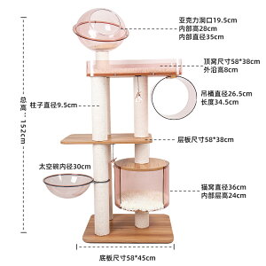 キャットタワー 木製 猫ベッド 木製 木目調 省スペース コンパクト 猫タワー 天然松木 丈夫 安定 耐荷重 麻ロープ 透明宇宙船 猫用 遊び場 休憩 爪とぎ 多機能 家具 インテリア 簡単組立
