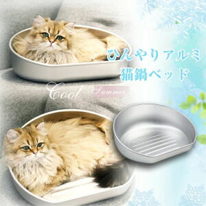 猫鍋ひんやりクールベッドアルミねこ鍋夏用猫ベッドタライ滑り止め付きかわいいおしゃれ猫キャット涼しいひんやり暑さ対策熱中症