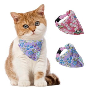 EpicCos ペット 三角バンダナ 猫用 首輪 かわいい 招き猫デザイン ペット用品 エプロン 調整可能バックル 和風 猫アクセサリー (Style D) 【ユニークなデザイン】古典的な和柄の招き猫に花柄の要素を加え...