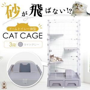 ?これ1つでトイレ&ケージ!トイレ一体型 ?砂が飛ばない!フルカバーのドーム型トイレ! ?キャスター6個付きで歪みにくい! ?猫砂用スコップ付き! ?おもちゃやおやつ、猫砂も一緒に片付け!引き出し収納付き ?2種類のステップ付きでしっ...