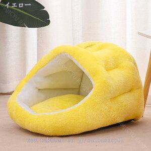 表地素材:ポリエステル内部素材:ポリエステル詰め物素材:PP綿、スポンジ【ドーム型デザイン】ドーム型ペットベッドです。入りたくなる小さい入口で、狭い所に入る習性があるネコちゃんや小さなワンちゃんを誘惑。フカフカな寝心地