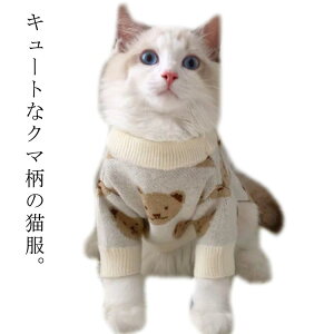キュートなクマ柄の猫服。室内着はもちろん、ちょっとしたお出かけ着にもOK! 伸縮性があり、胴周りのあるワンチャン/ねこちゃんにも安心! そで口と首回りに伸縮リブがあり、ズレ防止に役立ちます。 大切な家族のワンちゃんやネコちゃん