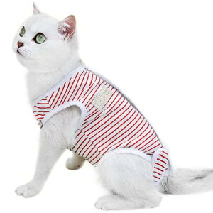 猫用 ペット術後ウェア ペット猫去勢服 猫の産後服 手術着 舐め防止離乳服 ストライプ猫去勢服 皮膚保護 手術用 男の子 女の子 兼用 (レッド L) 送料無料 【日常生活そのまま】避妊手術や開心術後の自傷保護...