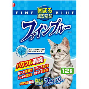 固まる紙製猫砂 ファインブルー。メーカー常陸化工。規格/品番 12L。サイズ 重量/容量 ●内容量:12L。おすすめ ●オシッコで濡れた部分がブルーに変わります。●燃やせるゴミとして処理できます。●トイレに流すことができます...