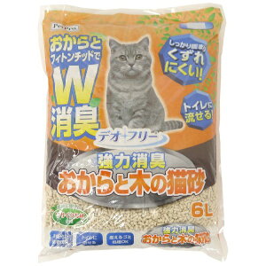 サイズ:1個◆商品名:ペットプロ デオフリー 強力消臭 おからと木の猫砂 6LおからとフィトンチッドでW消臭。しっかり固まりトイレに流せる商品紹介おからと木(フィトンチッド)が素早く強力にW消臭します。小さくしっかり固まるので1日あ