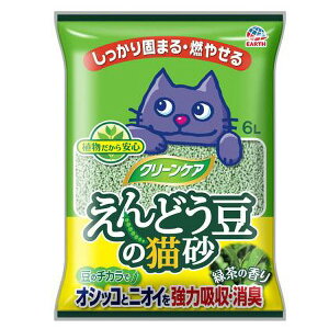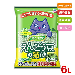 アース・ペット クリーンケア えんどう豆の猫砂 緑茶の香り 6L ・エコ素材・えんどう豆の繊維ファイバーがオシッコをしっかり吸収、小さく効率よく固まります。・えんどう豆に加え、竹ファイバーと重曹のトリプルパワーで強力消臭を実現