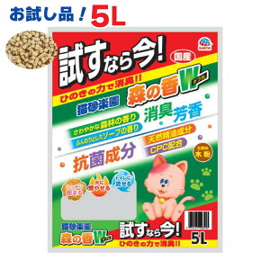 \数量限定!猫砂楽園 森の香ダブル お試し品! 5L/●しっかり固まる・トイレに流せる・燃やせる猫砂。●森林の香りとソープの香り(ホールインデオ香料)でダブル消臭。●天然精油成分と抗菌剤CPCのダブル抗菌でトイレ清潔...