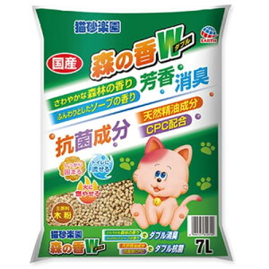 メーカー:アース・ペットふんわりとしたソープの香り!アースバイオ 猫砂楽園 森の香ダブル 7L×6袋対象猫特長●森林の香りとソープの香りでダブル消臭する木製の猫砂です。●天然精油成分と抗菌剤CPCのダブル抗菌でトイレを清潔に