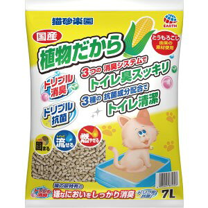 内容等予告なく変更する場合がございます。予めご了承ください。 名 称 猫砂楽園 植物だから 内容量 7L 特 徴 ◆消臭力がちがう ◆消臭・抗菌に優れた、固まる流せる猫砂 ◆クエン酸・植物抽出成分配合