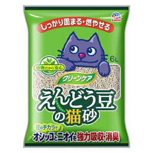 アース・ペット クリーンケア えんどう豆の猫砂 6L ・エコ素材・えんどう豆の繊維ファイバーがオシッコをしっかり吸収、小さく効率よく固まります。・えんどう豆に加え、竹ファイバーと重曹のトリプルパワーで強力消臭を実現...